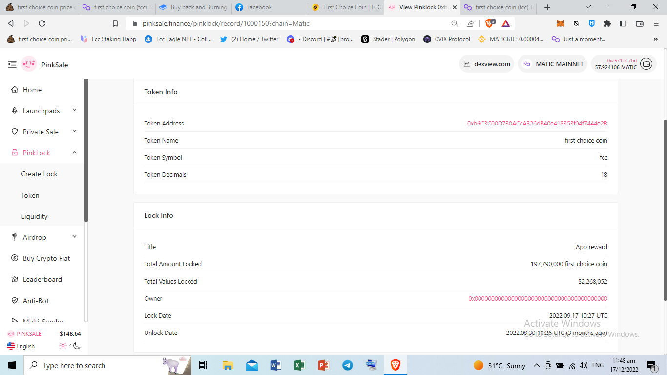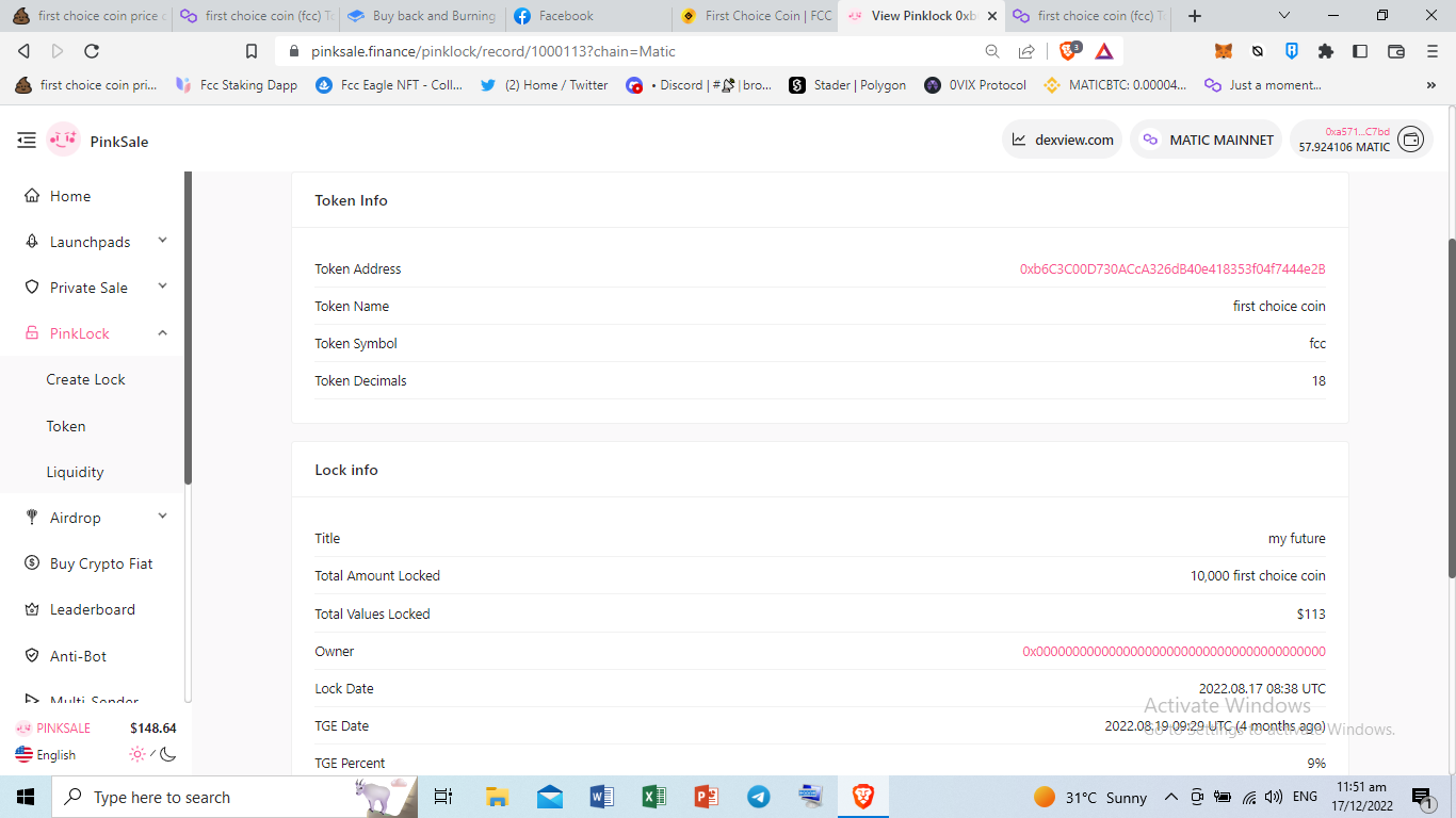Link: <https://www.pinksale.finance/pinklock/record/1000150?chain=Matic>